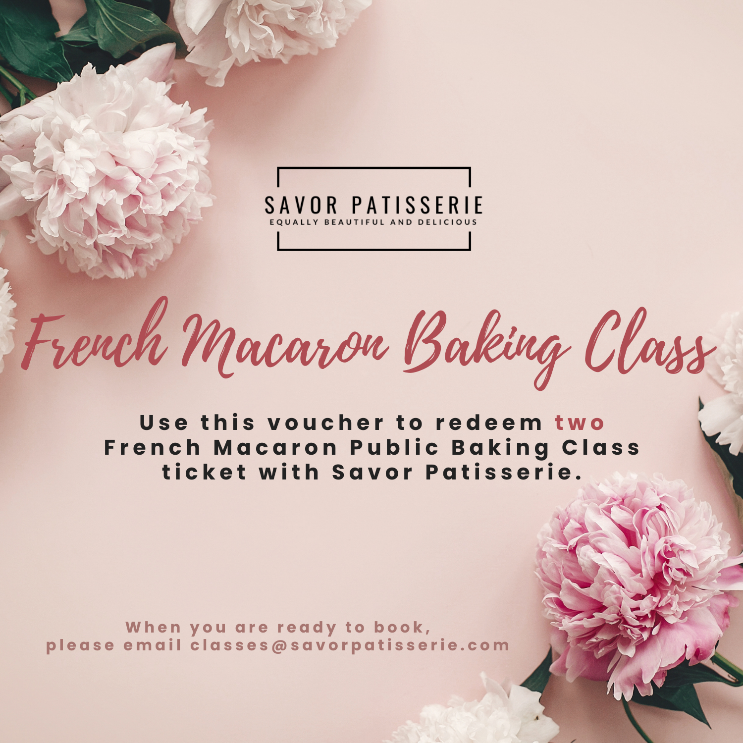 Recipient can then email to book their class at a later date with our baking class coordinator.